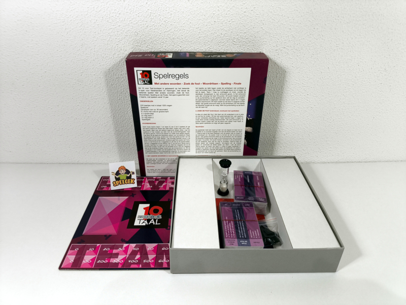 Dit 10 voor Taal-bordspel is gebaseerd op het bekende tv-spel voor Nederlanders en Vlamingen. Het bevat de bekende spellen Met andere woorden, Zoek de fout, Woordritsen, Spelling en de Finale.