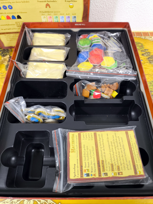 Tactisch spel op een groot speelbord. Bouw landgoederen en breng kuddes verschillende dieren naar de markt. Evenwichtige balans tussen geluk en strategie.
